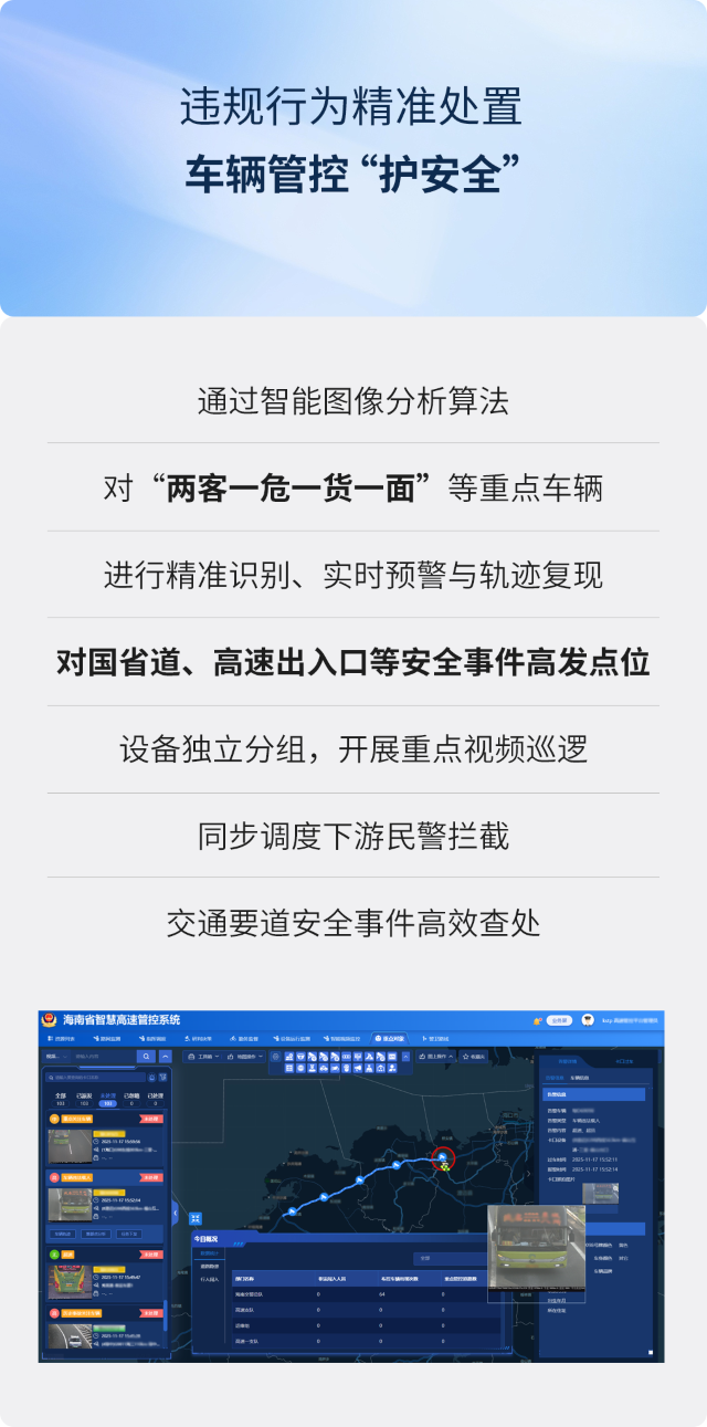 近日,人民公安报等多家媒体聚焦报道《海南:智慧赋能提升高速交管水平》。作为海南智慧高速管控系统的核心部分,科达为海南交警总队打造的智慧高速管控平台,以“感知、决策、管控、服务”四大智慧化目标为核心,实现全省高速公路数字化、智慧化管理升级。