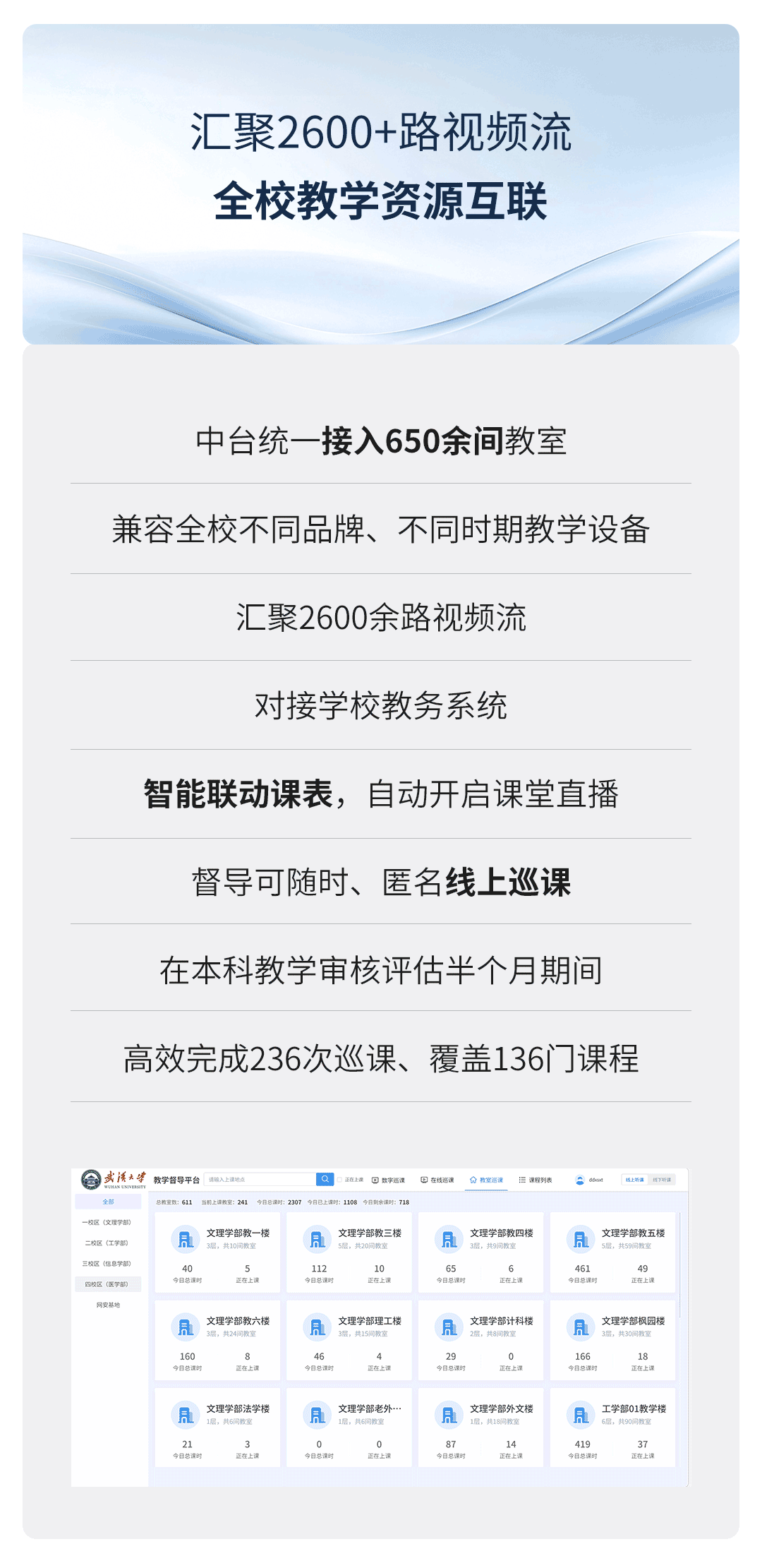 统一接入650余间教室音视频资源
