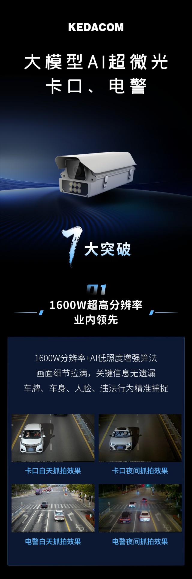 推出1600W大模型AI超微光卡口电警