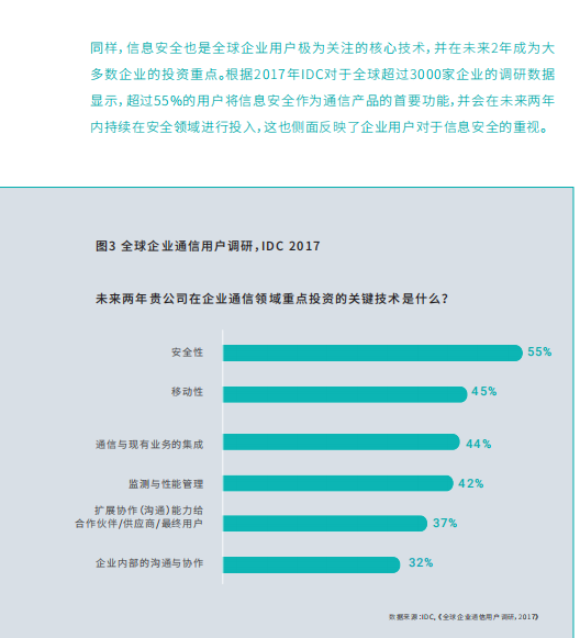 在展望篇,IDC分析预测了当前信息安全在中国会议行业的落地趋势,并认为将安全技术与具体业务有机结合,才是实现信息安全的关键路径。针对视频会议的应用场景,科达基于对政府用户需求的理解,率先推出自主可控的国密算法与视频会议系统深度整合的视频会议解决方案,将成为2018年行业内最佳的商业实践之一。