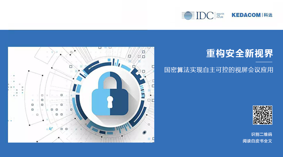 2018年10月,IDC与科达共同发布视频会议安全白皮书《重构安全新视界——国密算法实现自主可控的视频会议应用》,剖析视频会议安全威胁,为视界,重构安全边界。