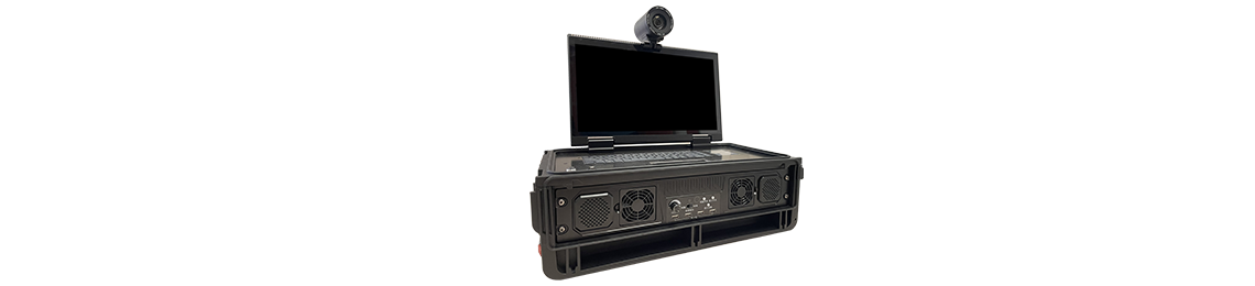 LJ600移动便携指挥箱,内含会议终端模块、电脑模块、20倍高清变焦摄像机、17.3英寸高亮显示屏、音响、麦克风,满足多场景应用,随时随地展开使用。